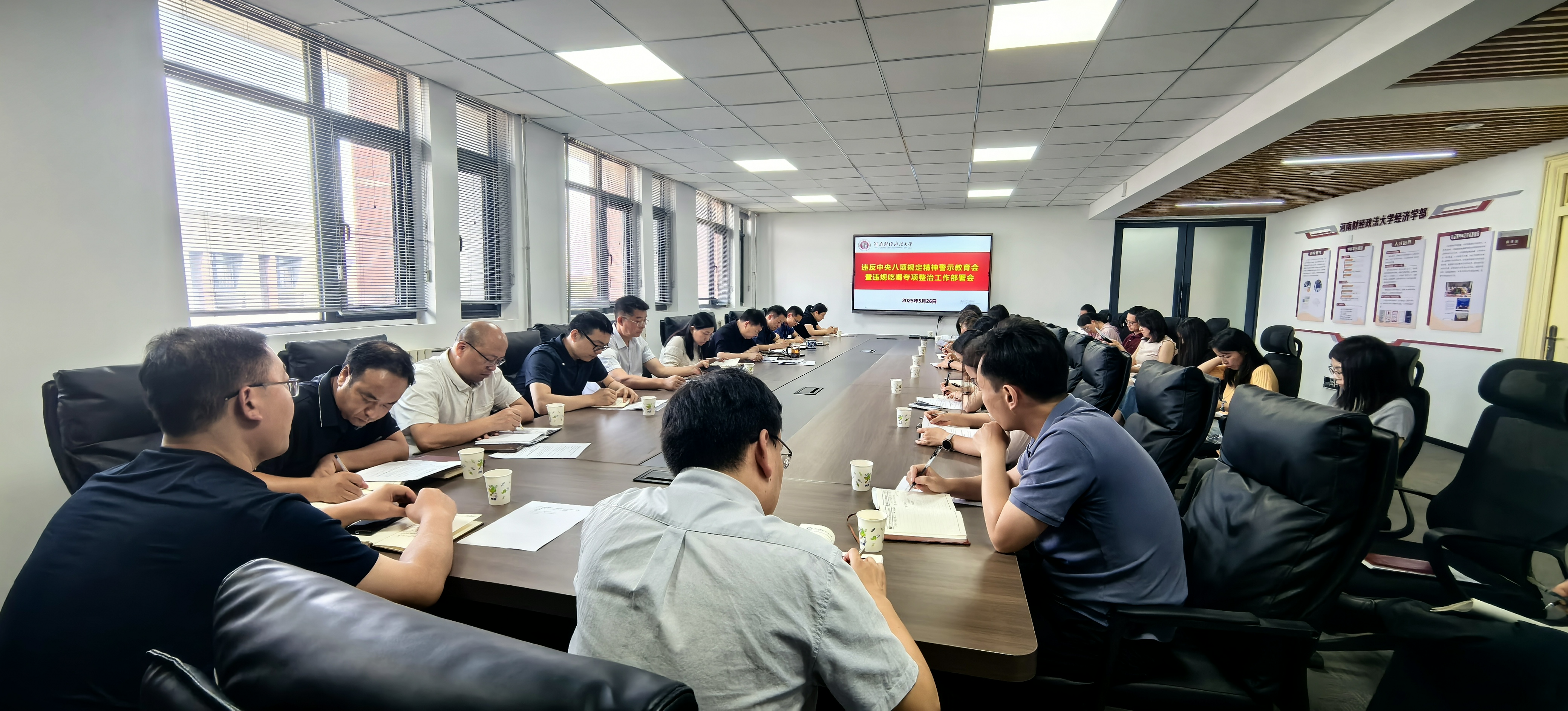 会议传达了中央纪委办公厅关于李献林、叶金广等人违规吃喝严重违反中央八项规定精神问题的通报,传达学习了省委关于深入贯彻中央八项规定精神严禁违规吃喝、严禁违规收送礼品礼金、严禁侵害群众利益、防范和纠治不担当不作为问题的若干规定,传达学习了省教育系统2025年集中整治群众身边不正之风和腐败问题的实施方案以及全省高校领域突出问题系统整治工作方案。