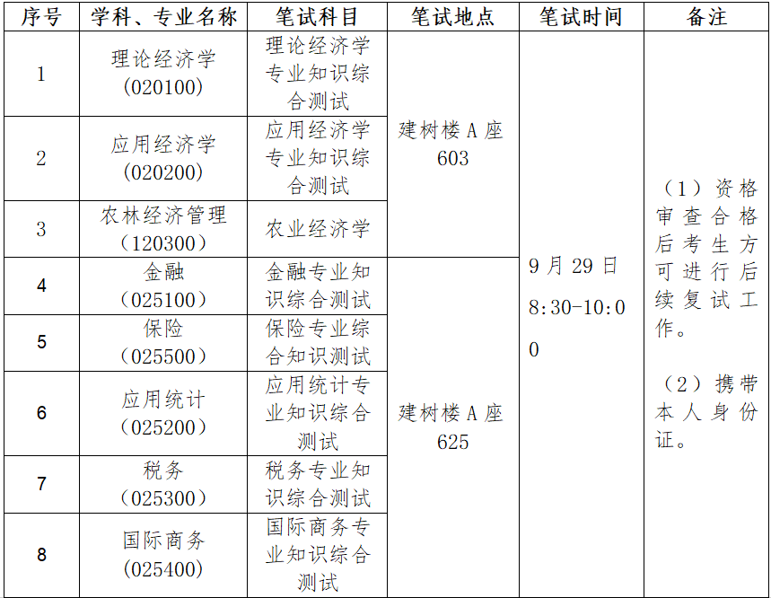 专业笔试采用综合性、开放性的能力型试题,综合考察考生理论知识和应用技能掌握程度、逻辑能力、专业素养、科研创新能力。专业笔试试卷分数为100分,考试时长为90分钟。各学科、专业的笔试科目、笔试时间和地点详见表1。