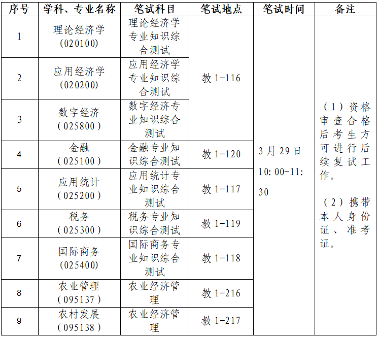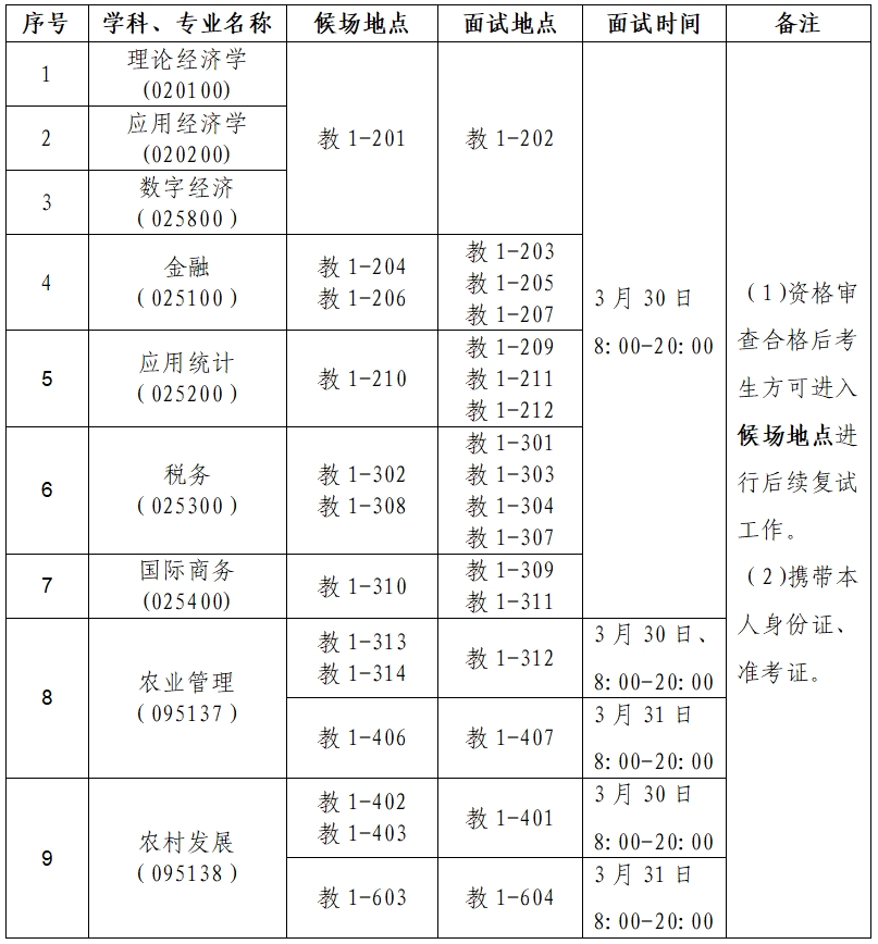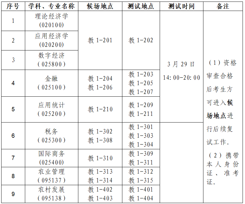 同时,请各位考生携带上述资格审查材料(原件及相关复印件),3月298:30-9:30在专业笔试所在教室(详见表1)进行线下资格审核。